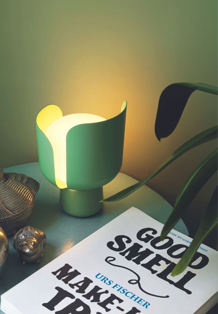 The small BLOM table lamp – its name derived from the Norwegian word “blomst” meaning flower – captivates with its floral design. Its body resembles a blossom with movable petals that allow you to adjust the light intensity.